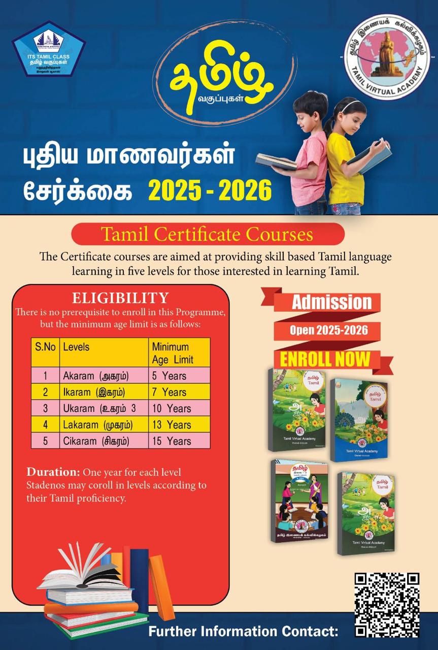 We are delighted to announce the launch of a new Tamil Class, jointly organized by the Government of Tamil Nadu – Tamil Virtual Academy(NRI TAMIL WELFARE DEPT) and Indonesia Tamil Sangam (ITS). We have been appointed as one of the Franchise of Tamil Learning Centre.